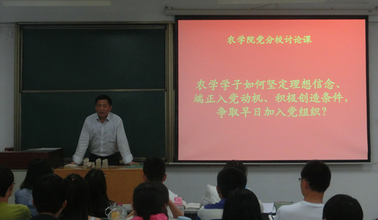 5月4日晚,bat365在线平台官方网站党分校入党积极分子培训班在北校区8308教室开展了关于“农学学子如何坚定理想信念、端正入党动机、积极创造条件,争取早日加入党组织的”主题讨论。学院党委书记惠安堂为本次党课进行了精彩的讲授。