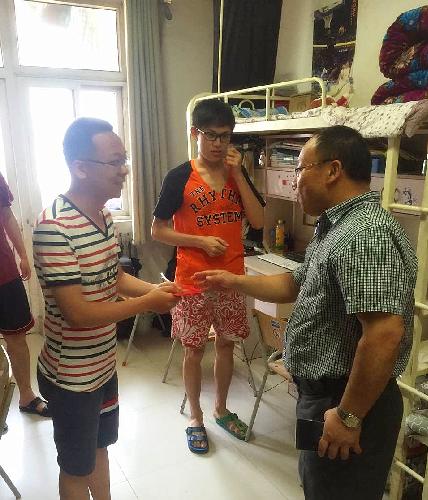 通知发出后,全院学生开始宿舍卫生大扫除,柜子上常年积下的灰尘、床底下被遗忘的垃圾,都被彻底清扫干净。随后,bat365在线平台官方网站党委副书记张海成以及各年级辅导员来到学生宿舍查看大家打扫情况,对卫生优秀的宿舍提出了表扬,并将准备好的“空调小红包”递到同学们手上。当走进毕业生宿舍时,他叮嘱毕业生:“今年的毕业季比较炎热,大家在使用空调时要保持室内卫生,避免滋生病菌而导致身体生病,希望大家健健康康毕业,平平安安离校。”