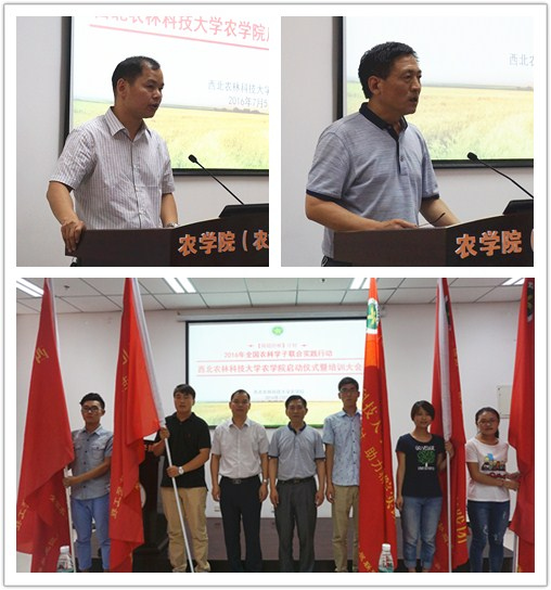 会上,曹军会书记和惠安堂书记为所有实践队授旗并发表讲话。曹书记强调:“当代青年要培养自己责任意识和担当意识。把农业进步、农村富强、农民富裕的责任郑重地扛在自己的肩膀上,要有舍我其谁、责无旁贷的勇气和担当,要把对国家三农的责任与自身的成长成才紧密地联系在一起,牢不可分,形成自觉的意识和体悟。”惠书记提出三点意见:一是提高思想认识,勇于担当,精准发力,为打赢脱贫攻坚战做出应有的贡献。二是将自身专业与解决农村社区的具体问题相结合,促使他们学以致思、学以致践、学以致用。三是要全力做好联合实践行动,借助“互联网+”完善沟通机制,为今后长期精准帮扶奠定了坚实的基础。