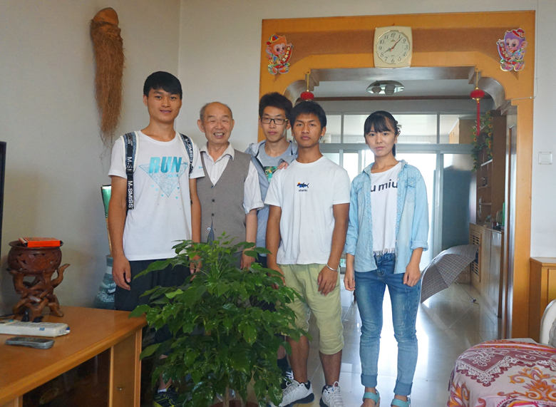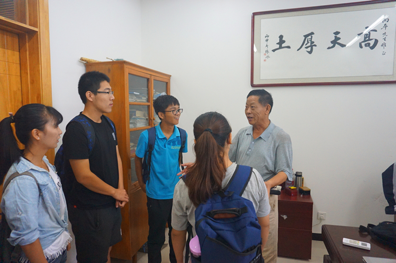 在退休老教授王立祥的家中,老先生收到礼物后,感慨万千,叮嘱同学们:“要时刻以粮食安全为己任,明确自己奋斗的目标。同时应着眼于科技创新,书本上的知识虽好,但都是过去式,老师应该以未来式的方法教学,你们也应该用未来式的方法去学习,这样才能更好的应对未来的发展。”