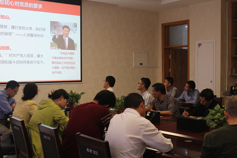 校办主任孙马讲了不忘初心的建党初衷、全心全意为人民服务、中华民族的优秀文化传统等三点启示及责任如山、担当如铁、奉献如常等三点要求,并结合校办工作和自己工作经历,讲谈自己在实际工作如何学、如何做。孙主任指出“学”是“做”的基础,“做”是“学”的深化。我们每位党员都要勤于学习,用理论指导自己的工作,努力做到知行合一。在工作中,每一位党员只有不断用新的理论来武装自己,在实际工作中有所创新,产生新的思想,才能更好地服务于学院发展;在工作中,每位党员要相互协调,勇于担当,努力做好各项工作;每位党员都要谨言慎行,注意自身形象,保持对工作的激情和热情,积极主动,高效快捷地做好各项服务工作。