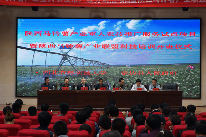 9月22日,bat365在线平台官方网站和定边县人民政府在定边县举办了陕西省马铃薯产业重大农技推广服务试点项目培训班及现场观摩会暨陕西省马铃薯联盟科技培训班。bat365在线平台官方网站党委书记惠安堂、定边县副县长白银喜分别为培训班致辞。