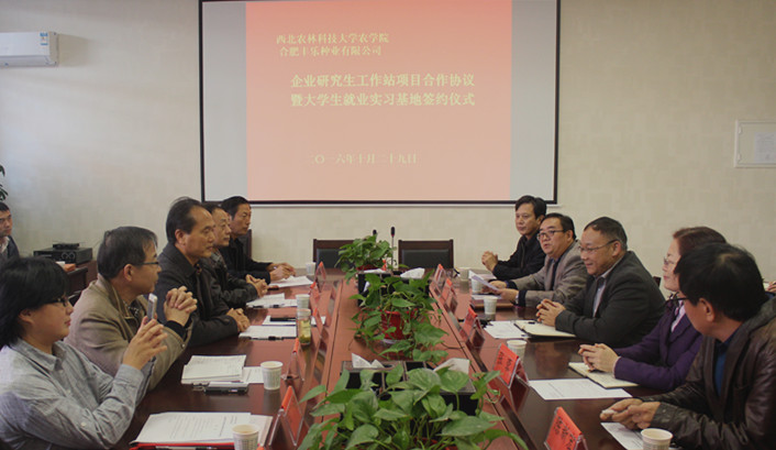 10月29日下午,bat365在线平台官方网站与安徽合肥丰乐种业研究生就业工作站暨大学生就业实习基地签约仪式在农科大楼bat365在线平台官方网站203会议室举行。合肥丰乐种业股份有限公司副总经理罗松彪研究员、全国劳动模范校友王浩波总农艺师、小麦公司总经理陈德胜、人力资源部人事主管田怡,bat365在线平台官方网站党委副书记兼副院长张海成、副院长张蓉、院长助理冯永忠以及学院部分专家、应聘学生四十人余参加了签约仪式。