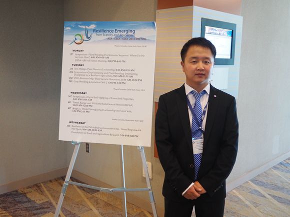 美国农学-作物学-土壤科学国际学术年会(The International Annual Meeting of the American Society of Agronomy, Crop Science Society of America, and Soil Science Society of America),简称ASA-CSSA-SSSA Annual Meeting,是国际农业和土壤科学领域水平最高的学术会议之一,参会人员多为来自10多个国家从事农学、土壤和环境科学及相关学科的研究人员。2016年学术年会盛况空前,参会人数达4000多人,会议主题为"Resilience Emerging from Scarcity and Abundance",旨在促进农业和土壤环境领域的学术交流,加强人们对于水资源短缺、环境安全和粮食生产等方面的认识。