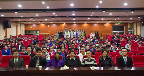 “单院长,您有着近十年的留学经历,那么请问国外的同学们有没有和我们一样,有考试周突击的情况呢?”问题一出,座下的同学们纷纷打起了精神。单卫星院长院长笑了笑,说道:“很少,国外教育要求学生重视课后自主学习,强调团队合作学习,一个课时量的课程常常需要学生课后花费约5个课时量进行补充学习,而许多实验与作业也必须要学生主动合作才能完成,课程的最终分数由许多方面组成,最终的期末考试只是占有一部分比例。”