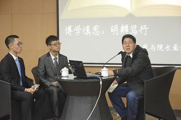 会议接近尾声,同学们与单卫星院长在现场进行了积极的互动,院长更是耐心地为同学们解答心中的疑惑。此次座谈会在大家热烈的掌声中圆满结束。同学们纷纷表示受益匪浅,来自1603班的白金泽同学说:“这次访谈会拉近了我们与院长的距离,院长的谦逊幽默给我留下了深刻的印象。在今后的学习生活中,我会更加积极认真地学习好专业知识,努力成为像院长这样的人。”