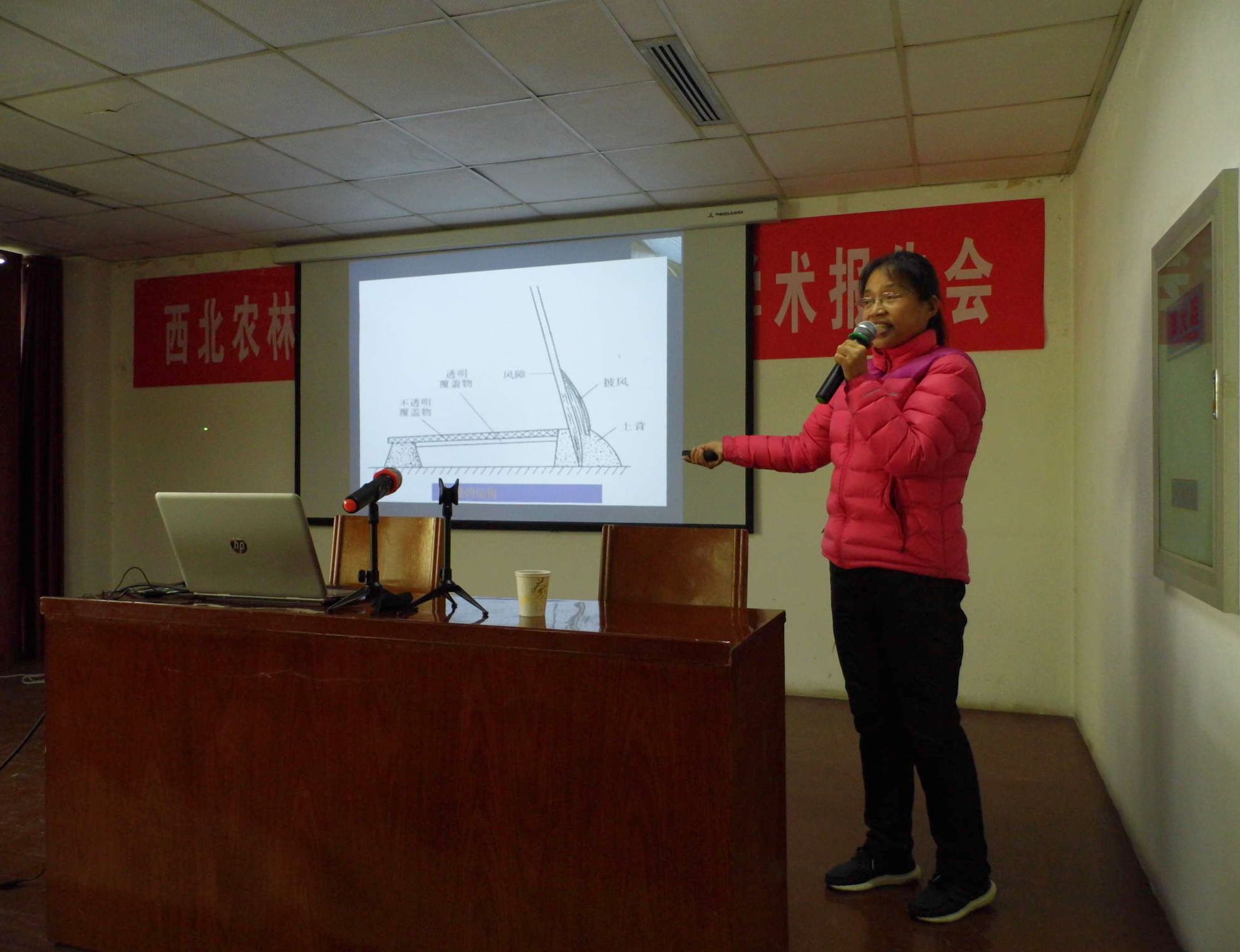 张小燕教授主要从设施农艺及其在小麦科研与生产中的应用等方面为在场人员做了讲授。设施农艺是采用人工技术手段,改变自然光照、温度和湿度等条件,创造优化植物生长的环境因子,使之能够更好生长的设施工程,包括日光温室、塑料大棚、地膜覆盖、遮阳网、防雨棚等。张教授首先讲解了不同设施的详细构造、优点及使用条件,然后从设施在小麦科研中的应用例如加代、花药培养及抗病性鉴定等方面举例做了详细说明,为大家在科研和生产中的更多应用带来了启发。