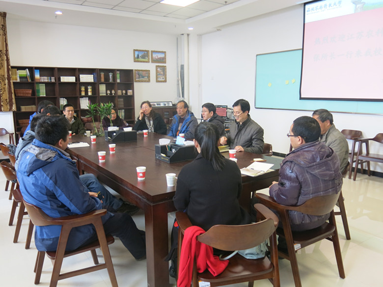 12月14日上午,江苏省农科院经作所所长张杰夫一行4人来bat365在线平台官方网站交流。bat365在线平台官方网站单卫星院长、董振生教授、胡胜武教授、徐爱遐教授、刘绚霞教授等在农科楼542会议室参加了交流活动。会议由单卫星院长主持。