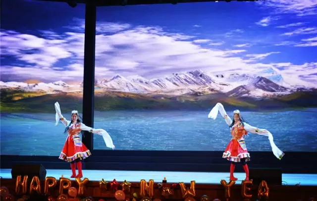 傣族舞蹈《竹林深处》、藏族舞蹈《扎西德勒》和维吾尔族舞蹈《纵情歌舞》,多民族学生伴着或抒情或欢快又极具民族特色的乐曲翩翩起舞,充分展示了各民族的特色与文华,体现了多民族和谐共处的美好。深情对唱《爱一点》,以细腻、婉转的歌声表达出少男少女对爱情的懵懂与向往。教职工舞蹈队表演的舞蹈《花木兰》将喜庆、祥和的节日气氛推向高潮。由两名教师领唱、三十名学生合唱的歌曲《国家》,将晚会的主题推向“热爱祖国”“先国后家”的最高点,晚会圆满结束。
