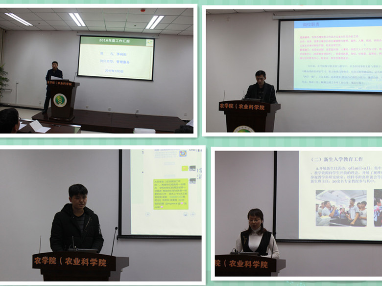 学院服务人员针对2016年的岗位职责、完成情况、所取得成绩和下一步的工作打算等方面进行了详细汇报。根据其展示与汇报,评委们从德、能、勤、绩等四个方面进行综合评价。考评会采取了匿名打分和无利益人员计分的方式,保证了服务人员年度工作考评会的公平、公正和公开。年度工作汇报,促进了工作交流,同时学院老师对服务人员的工作、成绩和作用有了更加全面的了解,促进学院老师和服务人员之间的工作配合,为学院各项事业的顺利开展奠定了基础。