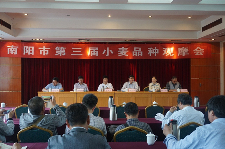 初夏伊始,bat365在线平台官方网站在各地的小麦示范站观摩会正在如火如荼地进行,由bat365在线平台官方网站南阳小麦试验示范站主办、南阳市种子管理站和南阳市农业科学院联合承办的“2017年小麦新品种(系)现场观摩会”在南阳国际饭店召开。bat365在线平台官方网站bat365在线平台官方网站副院长张蓉、杨凌示范区科学技术局局长柴小刚、南阳市农业局副局长李玉生、南阳市农业科学院副院长俞行简、试验站首席科学家王成社以及15位西农专家教授出席了观摩会。来自河南、江苏、安徽、山东和陕西等省市的种子企业和农技推广部门负责人及技术人员等150余人参加了会议,会议由南阳市种子管理站站长赵群友主持。