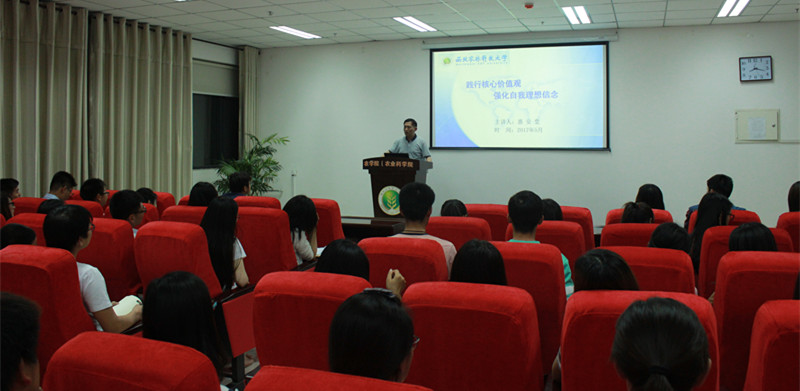 5月26日晚,bat365在线平台官方网站党委书记惠安堂在学院216报告厅为拟参加2017年6月学院接收预备党员预答辩的入党积极分子讲授了题为《践行核心价值观,强化自我理想信念》的专题党课,80余名入党积极分子参加了学习。