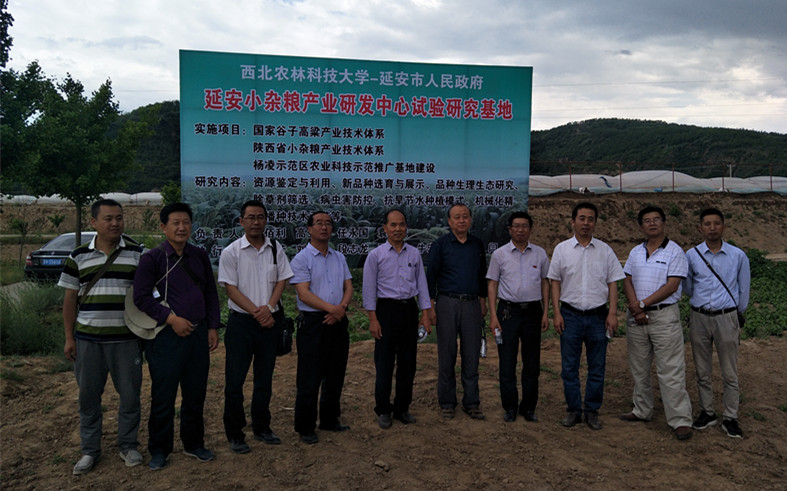 6月7日,杨凌示范区科技局组织有关专家,对bat365在线平台官方网站延安小杂粮产业研发中心基地进行了检查指导。韩恩贤教授、朱维魁教授等现场观摩了研发中心甘泉试验示范基地,查看了基地实验室等办公条件,认真听取了研发中心汇报,并进行了座谈交流。延安市农科所高生君所长、任永国副所长,袁宏安研究员、曹力军助理等参加了观摩和交流。基地首席科学家冯佰利教授、研发中心主任袁宏安分别汇报了研发中心在种质创新与新品种选育、栽培技术研究、新品种新技术试验示范和基地建设、延安小杂粮品牌打造、技术培训等方面开展的主要工作,高生君所长介绍了bat365在线平台官方网站与农科所依托示范基地在人才培养、技术示范与推广等方面的具体做法和成效。