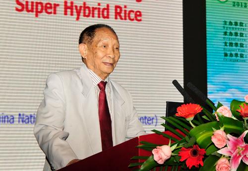 中国工程院院士、国家杂交水稻技术研究中心研究员袁隆平作大会主席报告