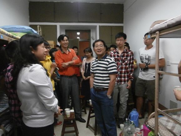来到学生宿舍,学院领导对新生的入学表示欢迎和祝贺,询问他们是否适应新的生活环境,在生活方面有什么困难,并为他们答疑解惑;鼓励新生克服困难、安心学习,叮嘱他们注意人身财产安全;指导新生应如何合理的安排大学时间,及早制定自己的学业生涯规划;同时也殷切地希望12级新生能珍惜时间,把握好四年大学生活,刻苦学习,奋发向上,学有所成,将来为校争光。新生们对学院领导的到来感到十分欣喜,看到领导们亲切的笑脸,听到他们温暖的话语,初见领导时的紧张与局促被喜悦和感动所取代。现场一片轻松、温暖和融洽的氛围。