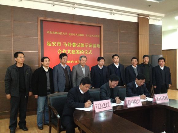 11月21日上午,bat365在线平台官方网站与延安市人民政府、子长县人民政府合作共建“bat365在线平台官方网站延安市马铃薯试验示范基地”的签约仪式在校国际交流中心举行。基地同时加挂“延安市马铃薯试验示范基地”和“子长县马铃薯试验示范基地”牌子。