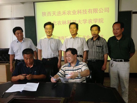 8月9日上午,学院与陕西天丞禾农业科技有限公司在学院二楼会议室签订协议,开展“农作物育种栽培技术”合作研发工作。院长廖允成,公司理事长郑敏生分别代表双方在合作协议上签字。