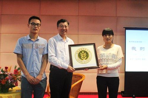 报告会现场,同学们还送上了亲手为孙校长制作的一件礼物��一幅用五谷杂粮拼成的我校校徽,也借此表达对我校为国家五谷丰登作出更大贡献的美好祝愿。在报告会的尾声,校长与同学们齐唱《年轻的朋友来相会》,共同祝愿,再过二十年,在我校建校100年之际,实现建成世界一流大学的梦想。