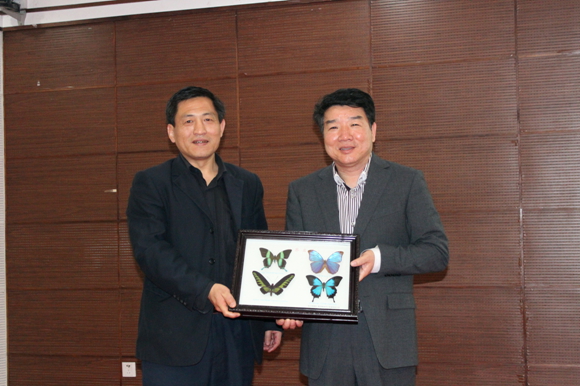 讲座结束后,惠安堂书记代表学院赠与李文虎先生一副蝴蝶标本以表感谢。讲座在经久不息的掌声中结束。