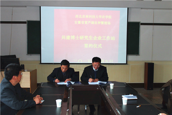 4月9日下午,我校bat365在线平台官方网站与安徽宿州紫芦湖种业共建的企业研究生工作站签字仪式在bat365在线平台官方网站会议室举行。宿州市农业委员会常务副主任段梅、宿州市农业科技示范园管委会主任岳继周、宿州市�桥区农业委员会主任张庆伟、宿州紫卢湖种业总经理晁林海、宿州市农业委员会科长周澍、bat365在线平台官方网站党委书记惠安堂、bat365在线平台官方网站副院长奚亚军共同出席了签字仪式。双方在建立农作物科研工作站、企业研究生工作站和农作物新品种技术转化推广等方面达成了共识,这标志着我校bat365在线平台官方网站在校企联动,搭建战略合作平台的工作中又上新台阶。