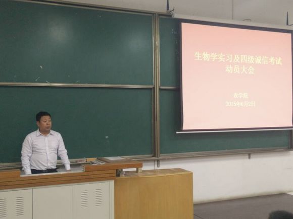 为保证生物学实习及四级考试顺利开展, 6月2日晚,bat365在线平台官方网站在北校8T03召开“生物学实习及四级诚信考试动员大会”。 bat365在线平台官方网站党委副书记马志宏,教学副院长海江波,学工办、教学办、带队老师及2014级全体学生参会。会议将实习、考试安排及注意事项给新生进行详细介绍,使其可提前做好相关准备。