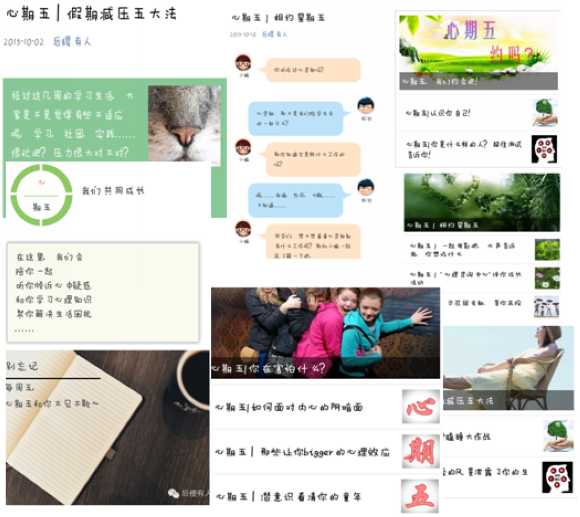 借助网络,传播知识。利用bat365在线平台官方网站“后稷有人”微信平台推送“心期五”专题,主要涉及各类心理文章、心理测试、心理互动游戏等内容,使学生只需通过手机,便可以涉猎更多的心理知识;通过定期为学生播放心理健康教育相关影片,使学生在轻松愉悦的氛围中,增强心理健康教育,增进同学之间的感情。