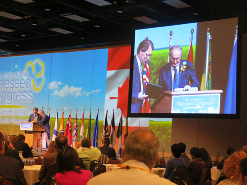 第14届国际油菜会议(14thRapeseed Congress)于2015年7月5日�9日在加拿大Saskatchewan省Saskatoon市举行。我校油菜研究中心胡胜武教授、徐爱遐研究员、董军刚博士以及正在加拿大研修的于澄宇副研究员、黄镇博士等5人参加本次盛会。
