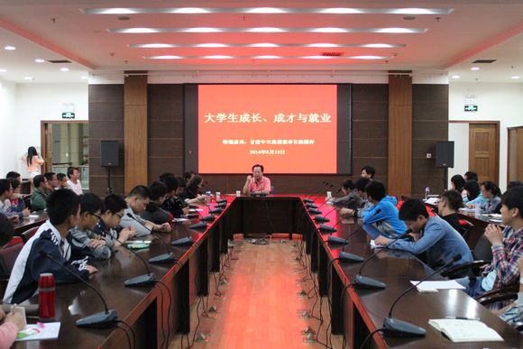 5月12日晚,甘肃中天羊业股份有限公司董事长、甘肃中天药业有限责任公司董事长、91届知名校友陈耀祥先生应邀与bat365在线平台官方网站2011级学生代表在南校区国际交流中心210会议座谈。座谈的主题为“大学生成长、成才与就业”,座谈会由党委副书记马志宏主持。