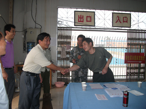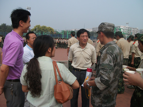 9月1日上午,bat365在线平台官方网站党委书记惠安堂,副院长杜世平,党委副书记马志宏一行三人冒着酷暑来到军训训练场,看望了正在参加军训的bat365在线平台官方网站2011级学生。