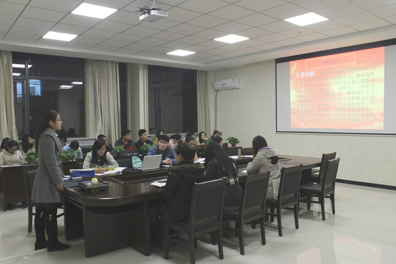 11月16日晚,为切实做好2015年下半年大学生党员发展工作,bat365在线平台官方网站大学生第二党支部召开了接收大学生预备党员“预答辩”会议。学院党务秘书廖代卿老师、参加预答辩的入党积极分子及预答辩考核小组成员等40余人参加了会议,会议由李娟同学主持。