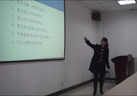 之后,韩老师就大学生职业生涯规划的含义、方法与实施策略三个方面展开课堂讲演。课堂上,韩老师以理论为基础,频频举例,与同学们积极互动,用身边真实的故事引导大家如何规划、实施、修正人生规划。在谈到认识自己的问题时,韩老师以自己的弟弟找工作为例,要求大家认真评估并发挥好自己的优缺点与兴趣特长;在谈到少数民族语言问题的时候,韩老师以自己学习俄语为例,剖析原因,对症下药,建议大家对自己狠一点,不要害羞,勇敢走出去、说出来……同学们听得津津有味,教室里不时便会传出欢乐的笑声。