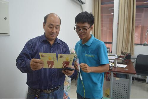 闵东红教授翻看贺卡