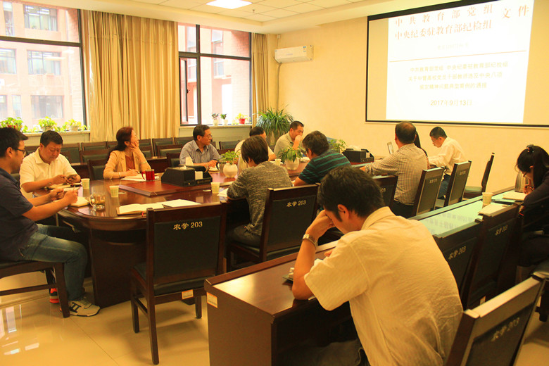 按照学校党委批示,全体与会干部认真学习了中共教育部党组、中纪委驻教育部纪检组“关于中管高校党员干部教师违反中央八项规定精神问题典型案例的通报”和“关于南京大学党委、纪委履行职责不力问题的通报”。